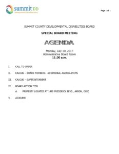 Agenda – July 2017 Special Meeting