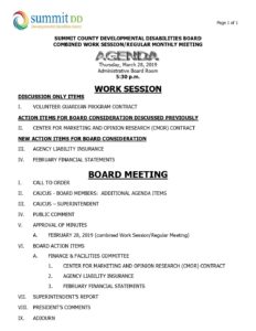 Agenda – March 2019